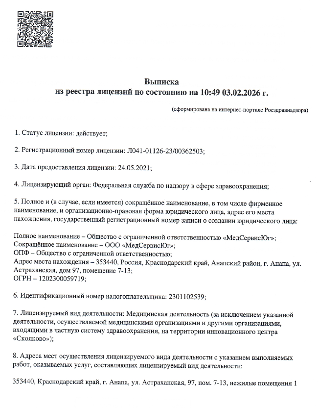 Контакты Медицинского центра «Юг-Мед» в Анапе